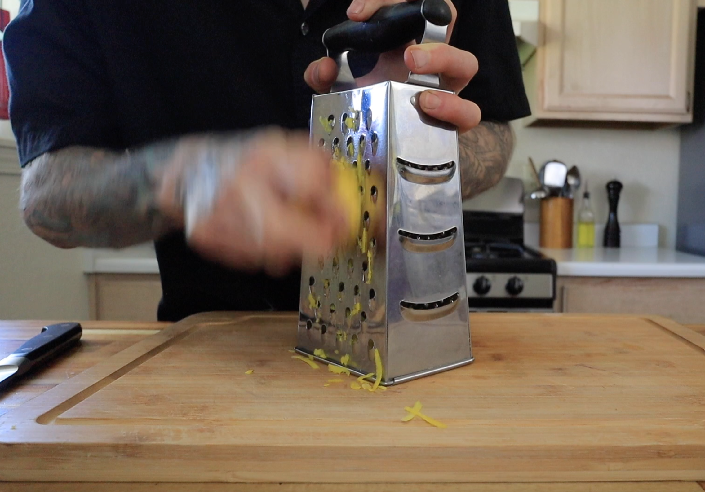 Cut the ends off the beet and peel with vegetable peeler. Grate the beet on a box grater.