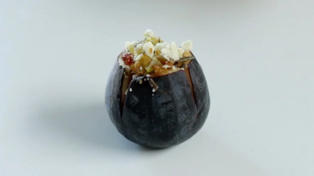 One of my favorite ways to use a fig. Fresh tasting with great textures and flavors.