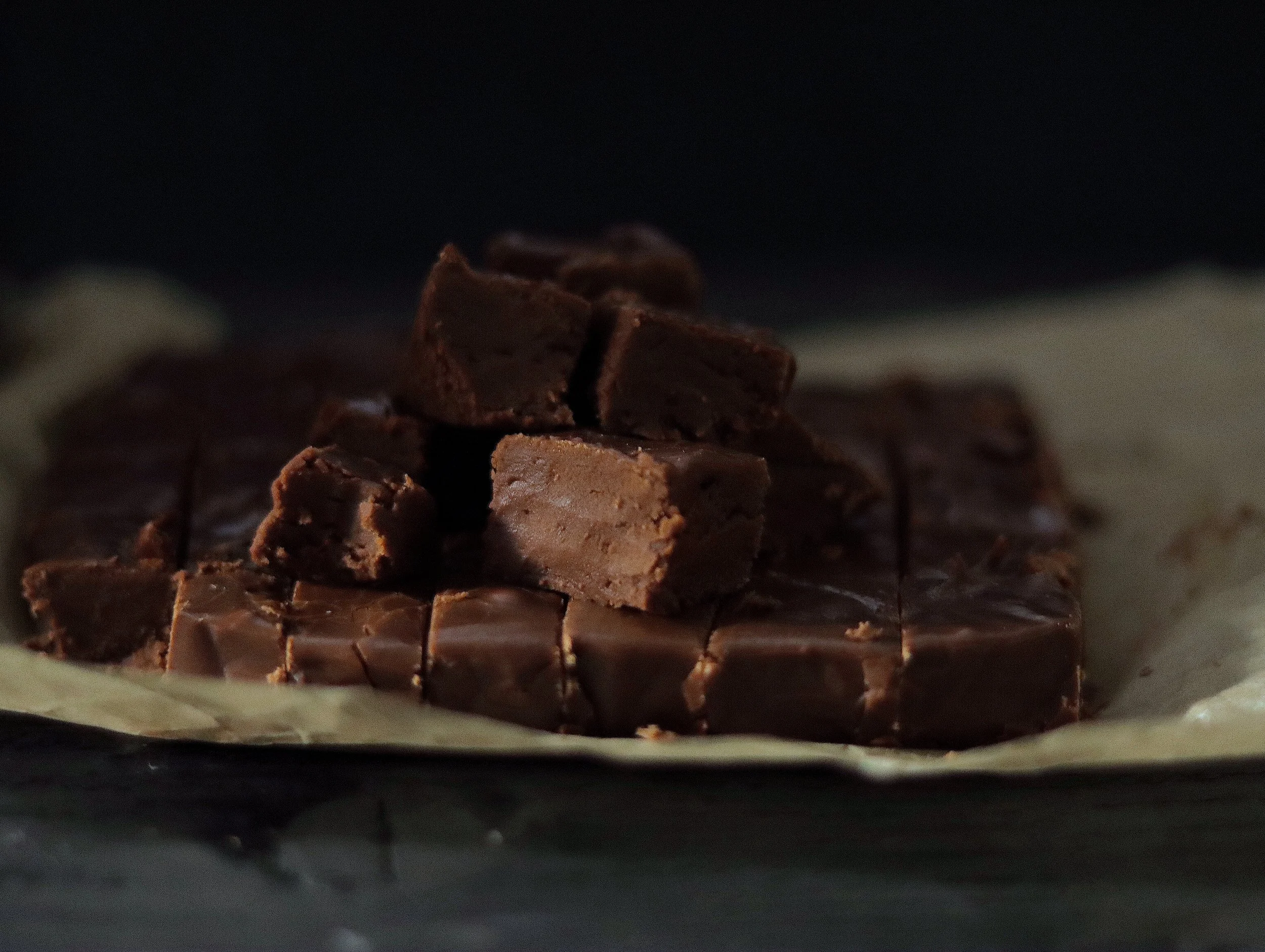 In your stock pot, mix sugar with the cocoa powder with your wooden spoon breaking up any clumps. Stir in the milk, put on your burner set to medium heat and continue to stir. Bring to a boil and STOP STIRRING. Set your candy thermometer up at this point, reduce heat to medium low and keep on a simmer. Bring to softball stage, this may take 10-15 minutes, so keep an eye on it! Once it has come to softball stage, turn off heat and place in butter, pinch salt, pinch cinnamon and vanilla extract. STILL NO STIRRING. Cool to 140, THEN start to beat the fudge with your wooden spoon until it starts to loose it’s shine and is still slightly pourable. This can take about 3-5 minutes. Pour into your parchment lined container to cool the rest of the way. Cool minimum 2 hours before cutting into square pieces. This will keep at room temperature, no refrigeration is required.